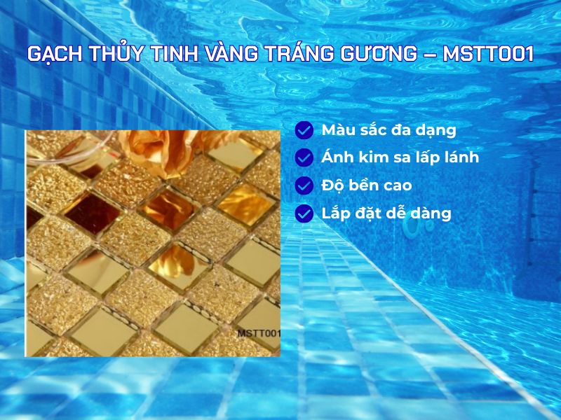 Gạch thủy tinh vàng tráng gương MSTT001 là lựa chọn lý tưởng để tạo điểm nhấn sang trọng cho mọi không gian. Với bề mặt tráng gương lấp lánh và màu vàng ấm áp, loại gạch này không chỉ giúp nâng tầm thẩm mỹ mà còn tối ưu ánh sáng, mang đến không gian sống rộng rãi và hiện đại. Sản phẩm phù hợp để trang trí bể bơi, phòng tắm, tường ốp, quầy bar hoặc khu vực nội thất sang trọng.